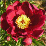 Sortenname: Mme Antoine RiviereBlütenfarbe: dunkelrotBlütenform: einfach