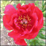 Sortenname: Cherry Ruffles Blütenfarbe: leuchtend rotBlütenform: halbgefüllt